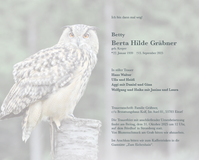 Berta Hilde Gräbnergestorben am 13. September 2025